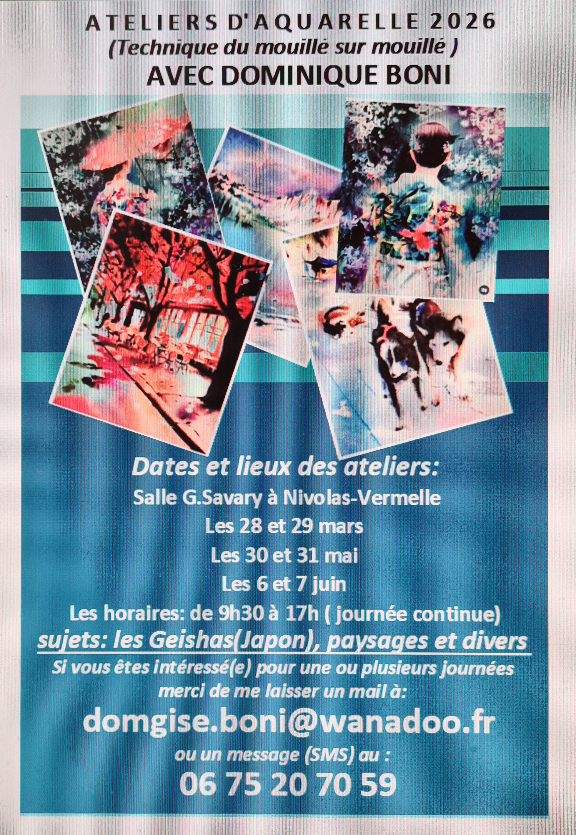 Atelier d'aquarelle avec la technique du mouillé sur mouillé