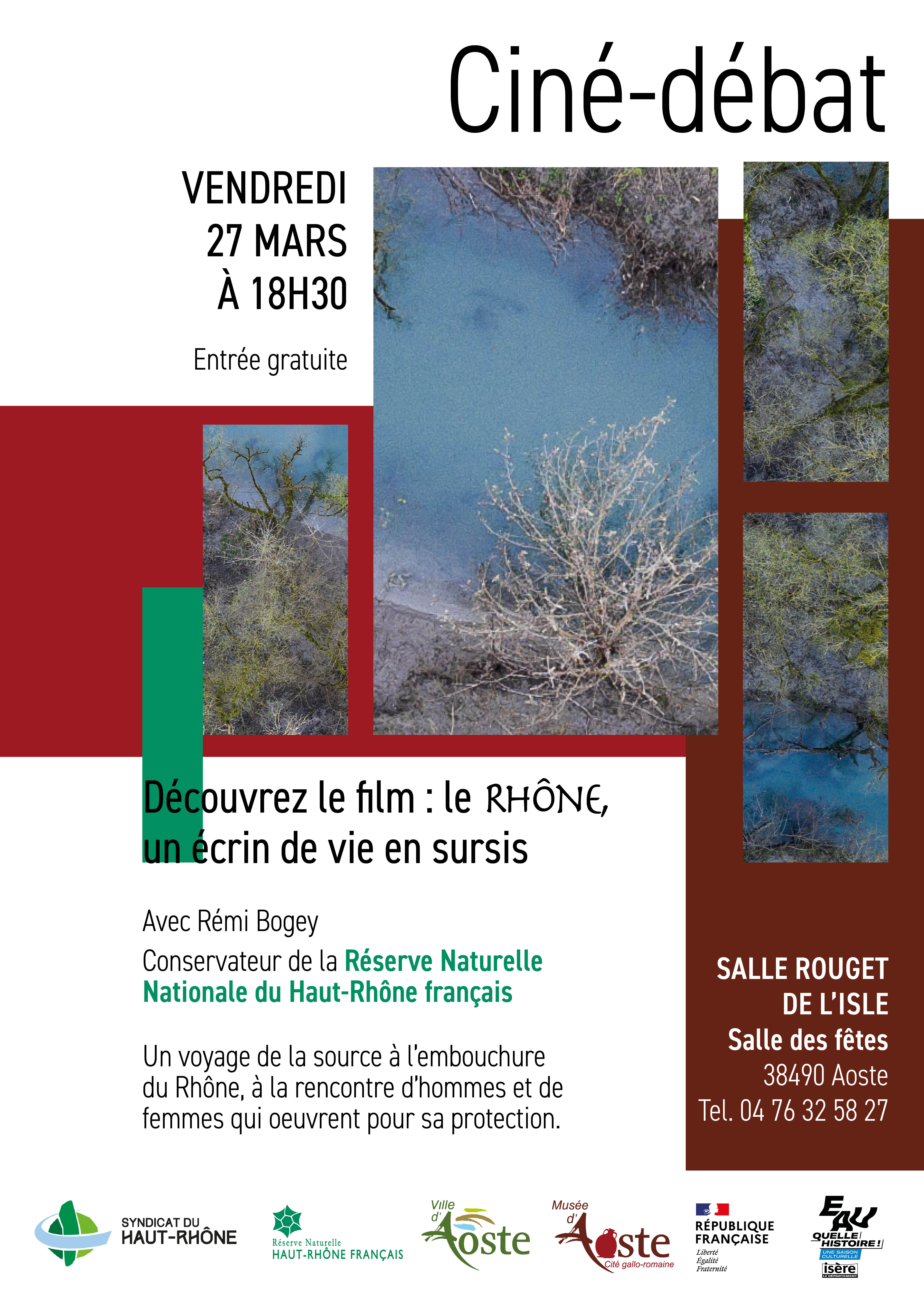 Organisé en partenariat avec le SHR et la Réserve Naturelle du Haut-Rhône Français. Documentaire suivi d'un échange avec un verre de l'amitié. S'inscrit dans le cadre de la saison culturelle - avec le département de l'Isère : Eau, quelle histoire !