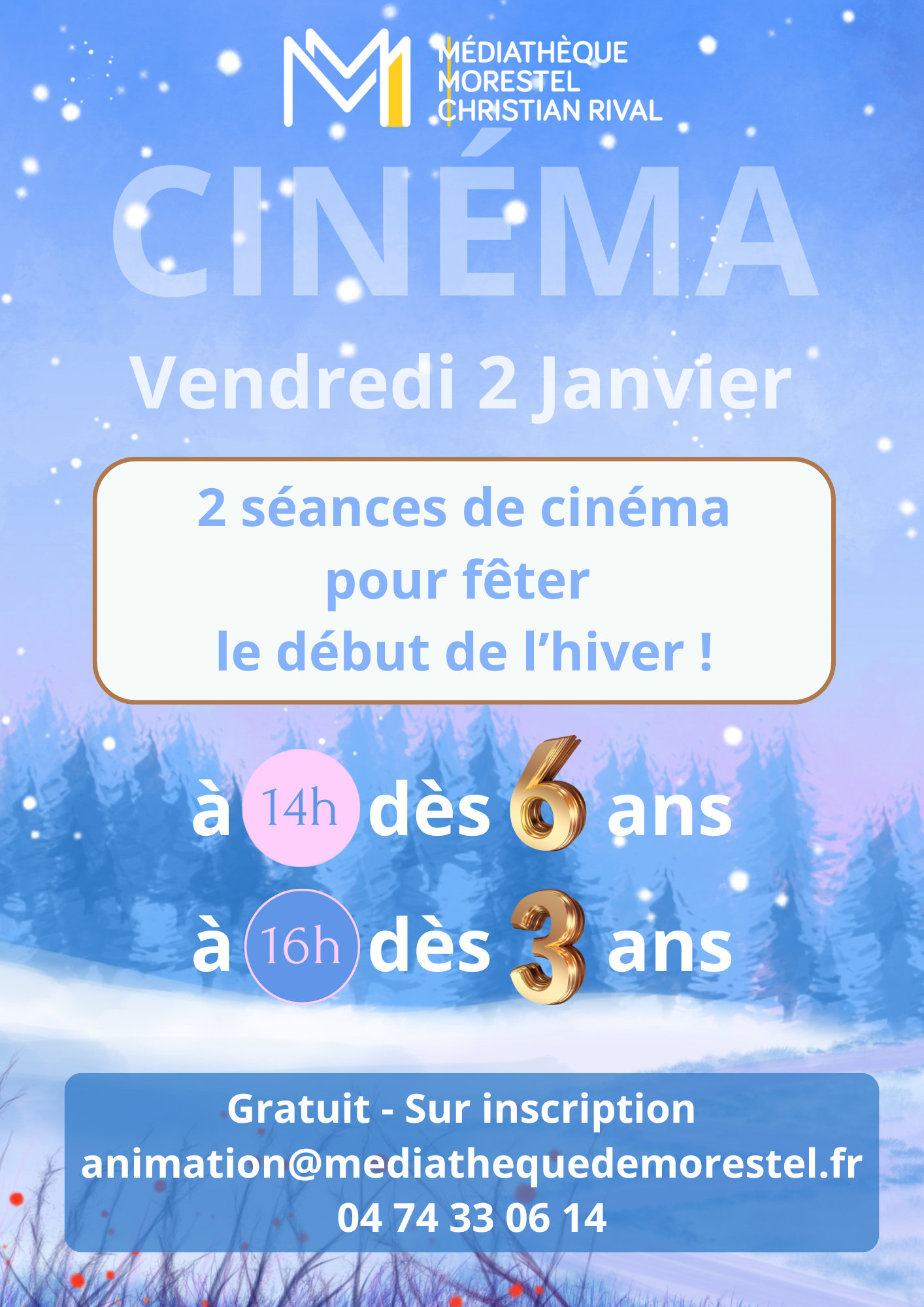 La médiathèque propose des séances de cinéma jeunesse sur le thème : Ça y est c’est l’hiver !