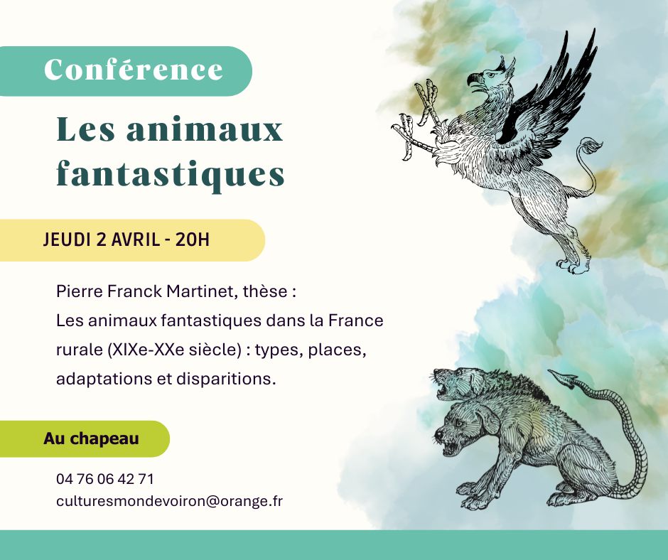 Conférence, donnée par Pierre-Franck Martinet, sur les animaux fantastiques dans la France rurale au 19e et 20e siècle.
