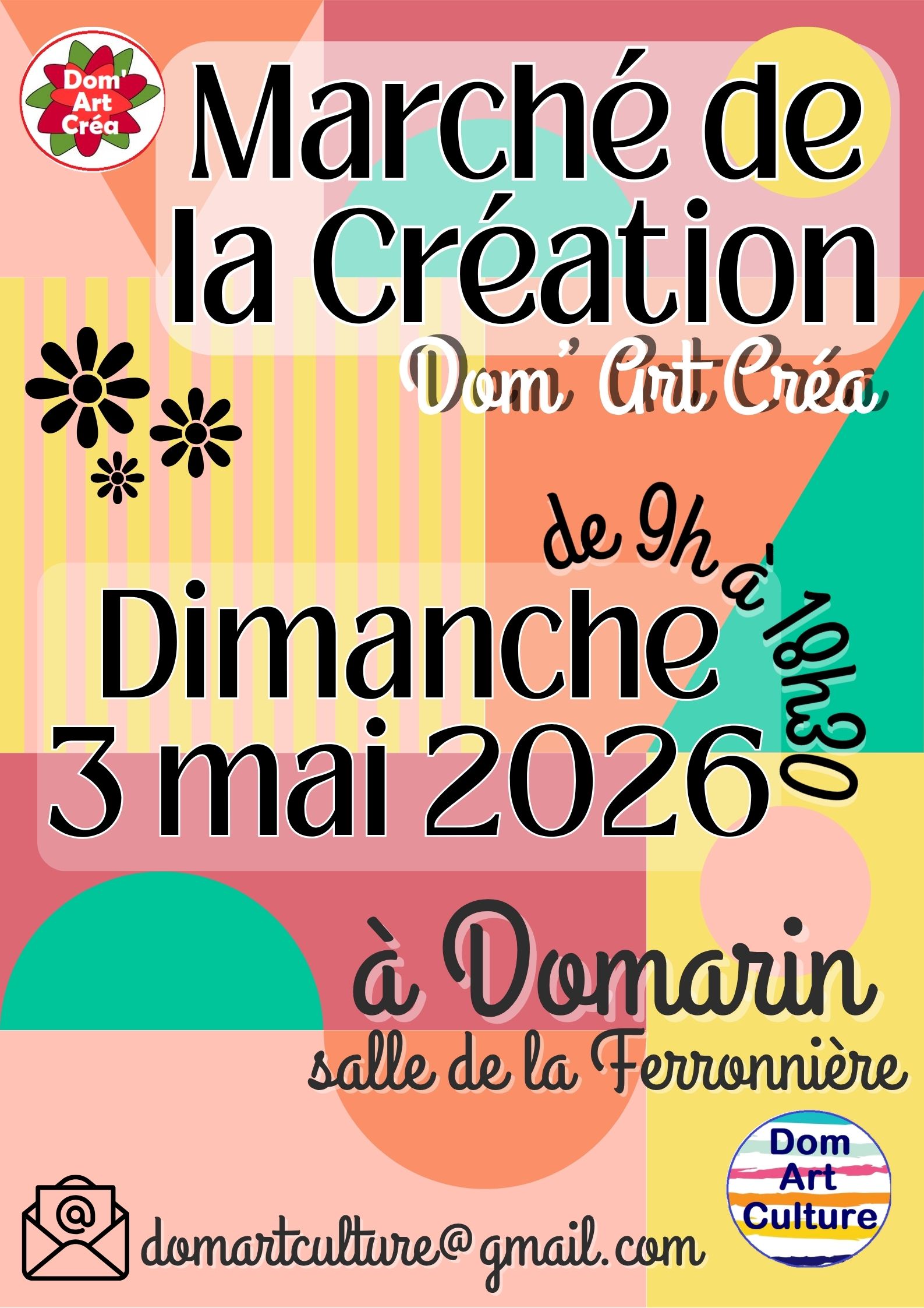 L’association Dom Art Culture organise comme chaque année son Marché de la Création, qui se déroulera le dimanche 3 mai 2026, de 9h à 18h30, à la salle de la Ferronnière à Domarin.