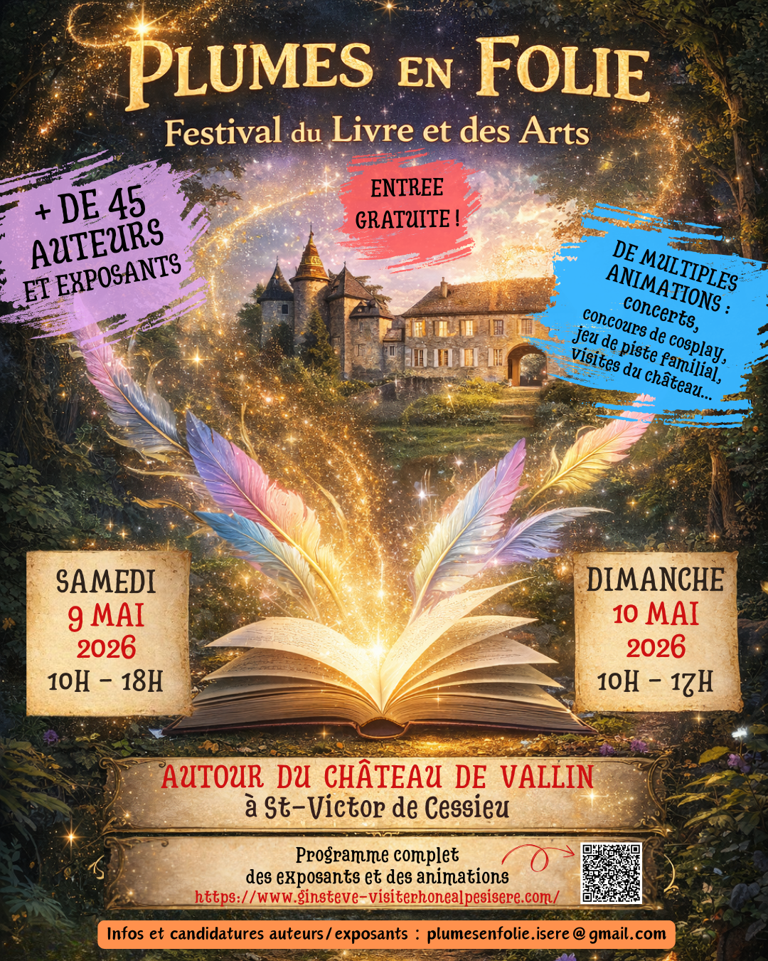 Pendant deux jours, le Château de Vallin devient le cœur battant de ces récits en liberté. Auteurs, artistes, artisans, spectacles, cosplay et jeux invitent petits et grands à parcourir un festival où la culture se vit comme une aventure !