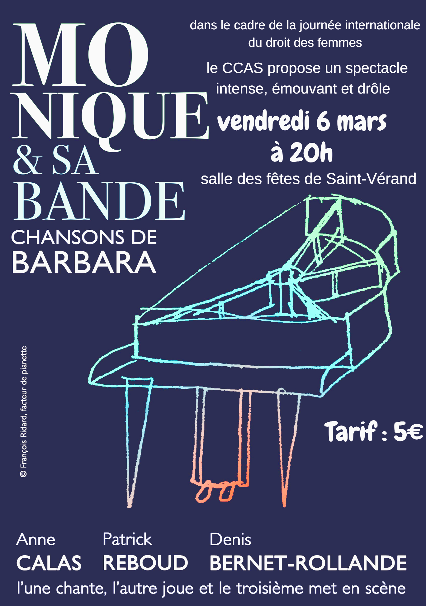 le CCAS de Saint Vérand propose une soirée musicale chant et piano autour des chansons de Barbara avec le groupe Monique et sa Bande
