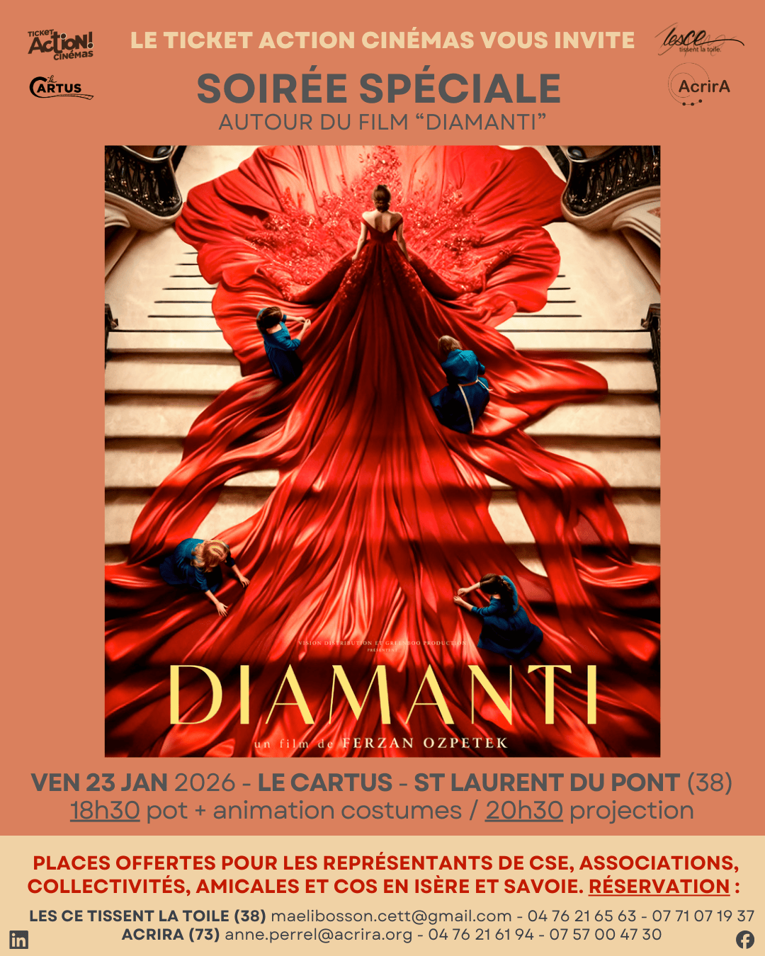 Places offertes pour les représentants de cse, associations, collectivités, amicales et cos en Isère et Savoie sur réservation