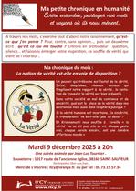 Ma petite chronique en humanité Le 2025-12-09 Soirée à thème En savoir plus sur Ma petite chronique en humanité